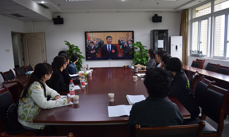 上午8时50分前,中心师生精神饱满地来到91110办公室静候大会开幕。收看开幕会过程中,师生聚精会神、认真记录。会后,中心师生进行了热烈的学习讨论,畅谈聆听习近平总书记报告的体会。
