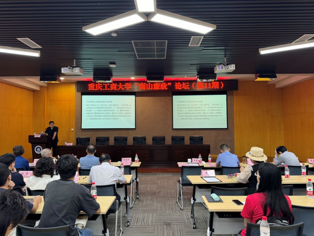 5月17日,由学校纪检监察室主办,永利集团3044am、法学与社会学学院承办的重庆工商大学“南山廉政”论坛(第11期)在图书馆多功能厅顺利举行。本届论坛以“清廉重庆建设的理论阐释与实践路径”为主题,由永利集团3044am研究员、法学与社会学学院党委书记李莉莎主持,法学与社会学学院150余名本、硕学生到场参会。