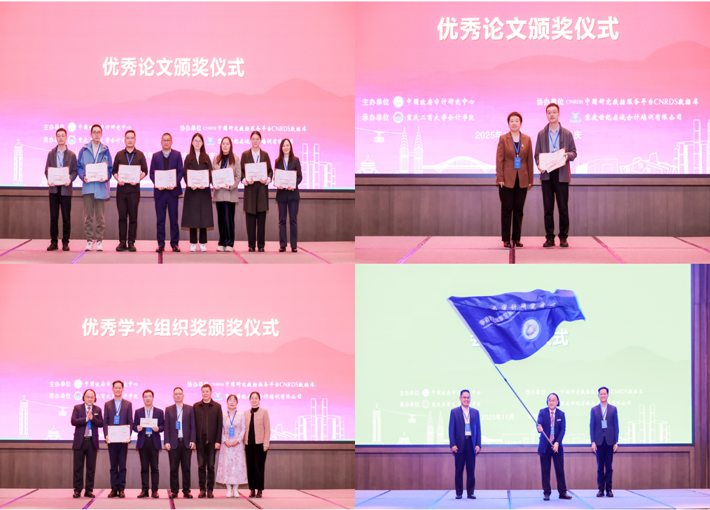 西南财经大学蔡利教授主持了闭幕式,中国政府审计研究中心国际学术研究与交流部主任廖林教授宣读了《优秀论文奖获奖论文名单》,随后举行了优秀论文奖、优秀学术组织奖颁奖仪式和会旗交接仪式。最后,北京化工大学经济管理学院院长李宾教授代表下一届审计理论创新发展论坛承办单位致辞。