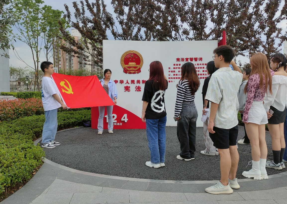 随后,在学生党员、会长彭文星的带领下,成员们在党旗下开展了庄严肃穆的宣誓仪式。坚定洪亮的铮铮誓词回荡在园内,同学们将牢记新时代青年人的历史使命,永葆新时代青年人的本色,将纪律规矩意识、廉洁自律意识熔铸于心。